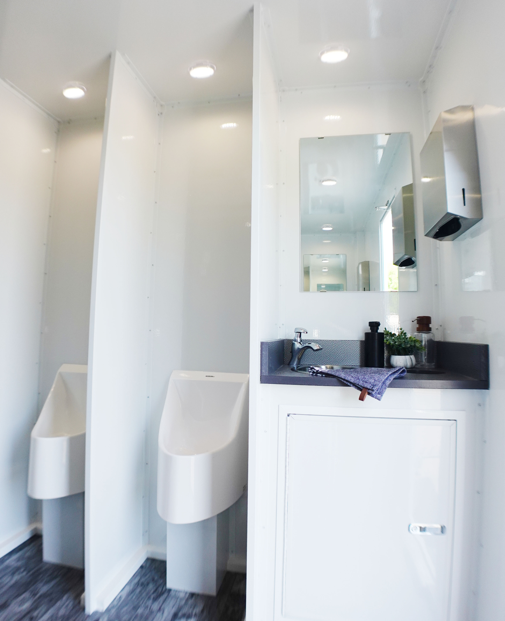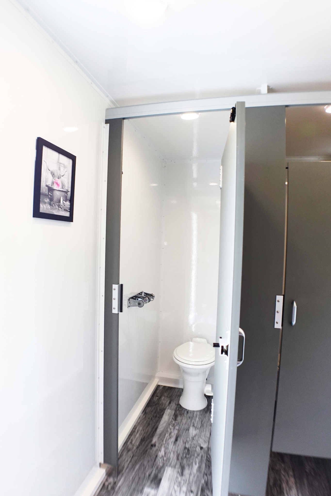 Our 10 Premier Pro XL Station event restroom trailer is perfect for large events and semi-permanent restroom solutions, designed to accommodate up to 425 guests. This large trailer is ideal for weddings, festivals, corporate events, or any large gathering.